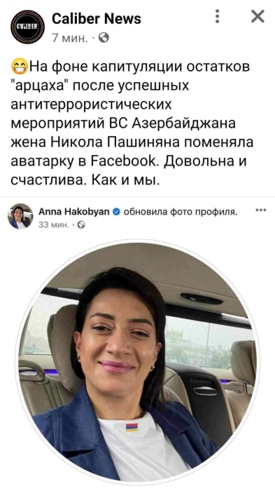 Քիչ անց Աննա Հակոբյանը նկարը հանել է ֆեյսբուքյան էջից, բայց ադրբեջանցիները հասցրել են նրա նկարը ֆիքսել ու համապատասխան կերպով արձագանքելով՝ ձեռք առել նրան․ «Ադրբեջանական զինուժի հակաահաբեկչական գործողությունների հետևանքով Արցախից մնացած պատառիկների կապիտուլյացիայի ֆոնին, Փաշինյանի կինը՝ Աննա Հակոբյանը փոխել է ֆեյսբուքի գլխավոր նկարը։