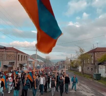 Տեսանյութ. Գորիսը Եռագույն դրոշներով, Արցախի դրոշով, խաչերով ու ջահերով միացել է Ջահերով երթին