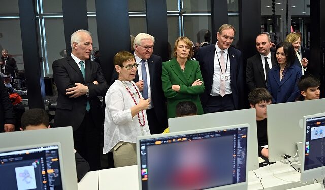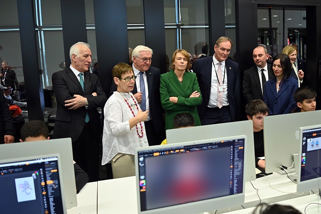 Պաշտոնական այցով Հայաստանում գտնվող Գերմանիայի Դաշնային Հանրապետության նախագահ Ֆրանկ-Վալտեր Շտայնմայերի և վերջինիս տիկնոջ՝ Էլկե Բուդենբենդերի հետ ՀՀ նախագահ Վահագն Խաչատուրյանն այցելել է «Թումո» ստեղծարար տեխնոլոգիաների կենտրոն։
