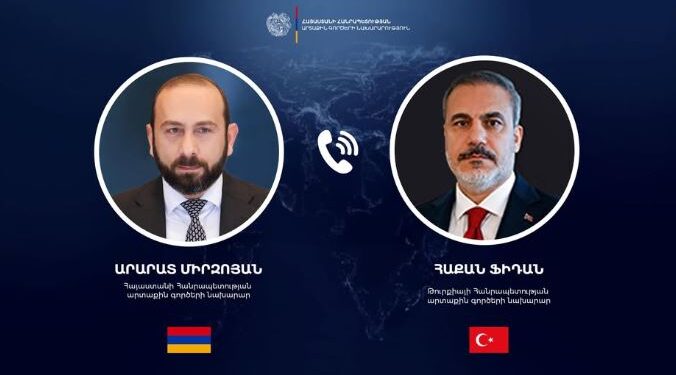 Հայաստանի Հանրապետության ԱԳ նախարար Արարատ Միրզոյանը հեռախոսազրույց է ունեցել Թուրքիայի Հանրապետության ԱԳ նախարար Հաքան Ֆիդանի հետ. հայտնում են ՀՀ ԱԳՆ-ից։