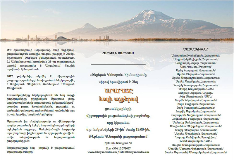Ի դեպ, ԹԿ հիմնադրամի «Արարատը հայի աչքերով» ցուցահանդեսն առաջին անգամ բացվել է 2016 թ. Երեւանում, Թեքեյան կենտրոնում, այնուհետեւ ՀՀ Անկախության հռչակման 25-րդ տարեդարձի առթիվ Արցախում՝ Շուշիի արվեստի կենտրոնում: