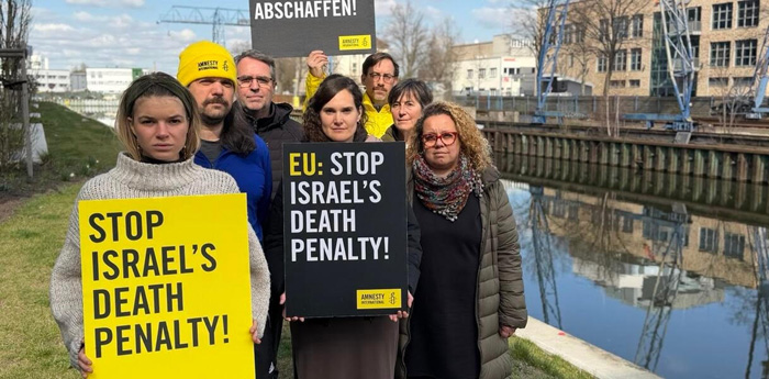 Լուսանկար՝ Իսրայելի մահապատժի ընդլայնման օրենքի դեմ են արտահայտվել տարբեր երկրներ, կազմակերպություններ, այդ թվում ՝ «Միջազգային համաներում»ը, որի բողոքի պաստառները լուսանկարում են: