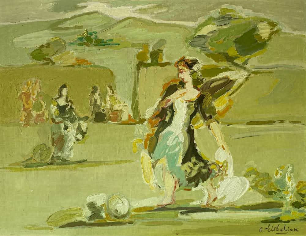 Կյանքի գաղտնիքներից մեկը գարունն է, ամենասպասվածը,երբ կյանքը նորից թեւեր է առնում,դիպչում մարդկանց սրտերին: Նկարիչը գարնան բույրը, թեթեւությունն ու գեղեցկությունը պատկերում է կնոջ կերպարով: Այդպիսին է Ռոբերտ Էլիբեկյանի կտավներից մեկը` «Գարուն» (1992): Դեռատի կինը` օդի պես թեթեւ  սահող  գարնանային քամու մեղմությամբ: Կնոջը վերագրվող գաղտնիքներից մեկը` հմայքը, ներկայացվում է թափանցիկ կանաչ ֆոնին` քնքշորեն: