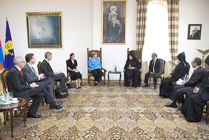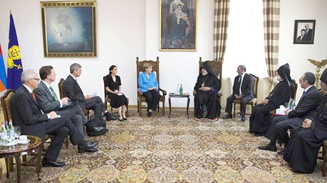 2018-ի օգոստոսի 23-25-ին տարածաշրջանային՝ Վրաստան, Հայաստան, Ադրբեջան այց կատարած ԳԴՀ կանցլեր Անգելա Մերկելը Երեւանում հանդիպեց նախագահ Արմեն Սարգսյանին, վարչապետ Նիկոլ Փաշինյանին, Ծիծեռնակաբերդում պսակ զետեղեց, առավոտ կանուխ, մինչ օդանավով Բաքու մեկնելը, այցելեց Սուրբ Էջմիածին, հանդիպեց Ամենայն հայոց կաթողիկոս Գարեգին Բ-ին: Սակայն կանցլեր Մերկելի անունը կաթողիկոսի անվանը զուգահեռ շահարկողները նրան չեն ճանաչում: Այդ այցը կայացել է կանցլերի գրասենյակի արտաքին քաղաքականության եւ անվտանգության հարցերով գլխավոր խորհրդական Յան Հեքերի անմիջական հանձնարարությամբ: Ժամանակը թանկ կապիտալ է տեխնոկրատ Մերկելի համար, ուստի Գարեգին Բ-ի հետ նրա 40 րոպեանոց զրույցը վկայությունն է ջերմ մթնոլորտի, որ նախ ստեղծվել էր Վեհափառի գերմաներեն ողջույնով եւ բնական շարունակություն գտել՝ Մերկելն ընդգծել էր, թե իրազեկ է, որ Ամենայն հայոց կաթողիկոսը սովորել եւ ծառայել է ԳԴՀ-ում: Փաստ է, չի հերքվի: