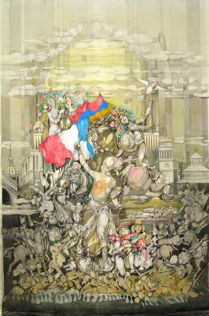 Այս ամառ, երբ որ Երեւանում էի, Հաղթանակի հետ կրկին քննարկեցինք ու որոշ տարբերակներ առաջարկեցի, սակայն Հաղթոն քանի որ սկզբունքային մարդ է, հաստատակամ ասաց, որ Ֆրանսիային նվիրելու նպատակով է կտավը ստեղծվել, ամեն մի շտրիխ պատկերելիս միահյուսվել է հայ – ֆրանսիական բարեկամության դարավոր ակունքների պատմությամբ: