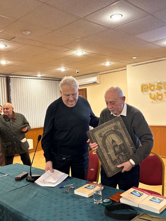 Հանդիպման խորհրդանշական եզրափակիչը դարձավ այն պահը, երբ Ռուբեն Միրզախանյանը հեղինակին նվիրեց «Հայաստանի պատմական քարտեզագրության ատլաս»-ը՝ որպես գիտական ժառանգության ու պատմական տարածական հիշողության պահպանման խորհրդանիշ։ Նվերը յուրատեսակ կամուրջ էր գրքում ներկայացված աշխարհագրական ուղիների եւ դրանց գիտական քարտեզագրման միջեւ՝ ընդգծելով պատմության եւ գրականության փոխլրացնող բնույթը։