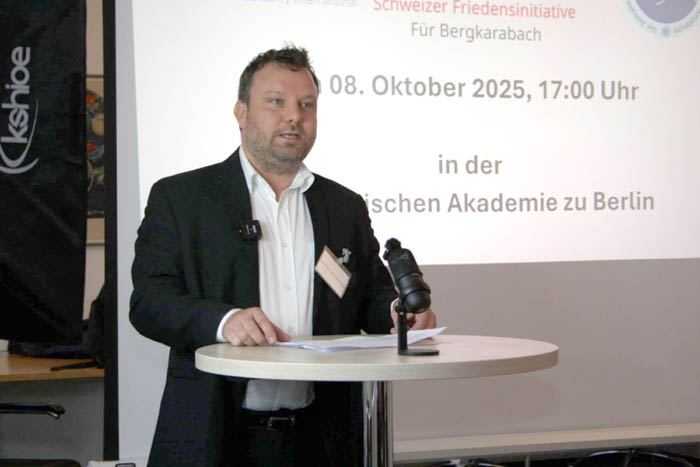 Գերմանիայի հանձնառության մասին է խոսել ԳԿԽ նախագահ Յոնաթան Շպանգենբերգը՝ ներկաներին հիշեցնելով ԳԴՀ ԱԳ նախարար Աննալենա Բերբոքի՝ 2023 -ի սեպտեմբերի 23-ի ՄԱԿ-ի ԱԽ-ում ունեցած ելույթը, որում Ադրբեջանի՝ ռազմական ուժի միջոցով փաստեր ստեղծելու, էթնիկ հայերի վտարումը որակում էր «անընդունելի»: ԳԿԽ նախագահը հիշեցրել է նաեւ ՄԱԿ-ի հատուկ խորհրդական Խուան Մենդեսի դասակարգումը՝ ըստ որի բռնի տեղահանությունը Ցեղասպանության կոնվենցիայի 2(բ) հոդվածին է համապատասխանում: Գրեթե 2 տարի անց ոչ ոք չի վերադարձել, չնայած Միջազգային դատարանի 2023 թվականի նոյեմբերի 17-ի Ադրբեջանին պարտավորեցնող որոշման: Արցախի մարդու իրավունքների նախկին պաշտպան, Արցախի համայնքի ներկայացուցիչ Արտակ Բեգլարյանը Բեռլինի լսարանին փոխանցել է, թե «արցախցիներին հուզող առաջին հարցը վերադարձին է վերաբերում: Վերջերս անցկացված հարցմամբ՝ 87 տոկոսը ցանկանում է վերադառնալ տուն: Սակայն Ադրբեջանը մերժել է մուտքի բոլոր հարցումները, նույնիսկ գերեզմանատներ եւ եկեղեցիներ կարճատեւ այցելությունները եւ համակարգված ոչնչացնում է հայկական մշակութային ժառանգությունը, ապօրինի բնակեցնում հայկական տները»: