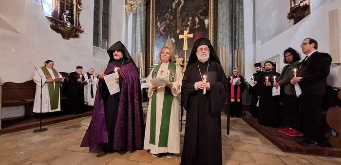 Նկարում՝ Աղոթք քրիստոնյաների եւ եկեղեցիների միասնականության, հալածյալ հայ քրիստոնյաների համար Վիեննայի սուրբ Փրկչի տաճարում: Լուսանկարը Ավստրիայի կաթոլիկների կայքի: