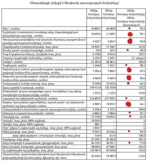 2․ երշիկեղենի արտադրության ծավալը նվազել է 4,9 տոկոսով,