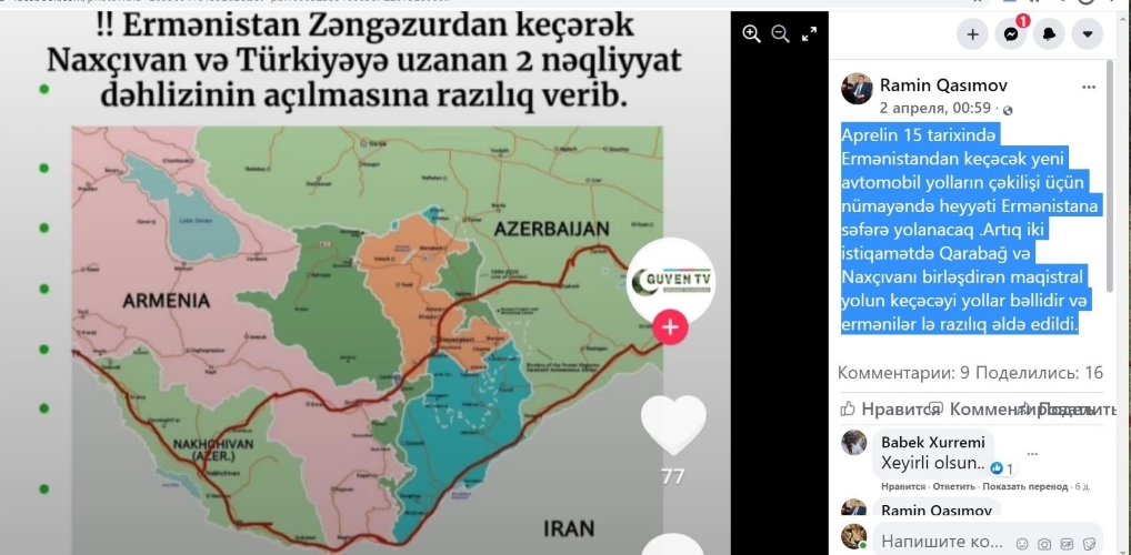 Իսկ դուք տեղյա՞կ եք, որ ապրիլի 15-ին Ադրբեջանից Հայաստան մեծ պատվիրակություն է գալու և քննարկելու են Սյունիքով, Արցախով, ադրբեջանից Նախիջևան, Թուրքիա ավտոմայրուղու կառուցումը։