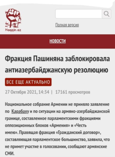 «Ադրբեջանում ցնծում են…Իրենց հայաստանյան դրածոն` Նիկոլ Անհողը տապալում է հակաադրբեջանական նախաձեռնություններն ԱԺ-ում…