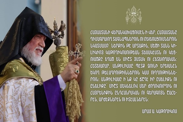Հայաստանի վերանկախացումէն ի վեր, Հայաստանը դիմագրաւող տագնապներուն ու բեւեռացումներուն նկատմամբ՝ ներքին թէ արտաքին, Մեծի Տանն Կիլիկիոյ Կաթողիկոսութեան տեսակէստն ու կեցուածքը եղած են միշտ յստակ ու հետեւողական։