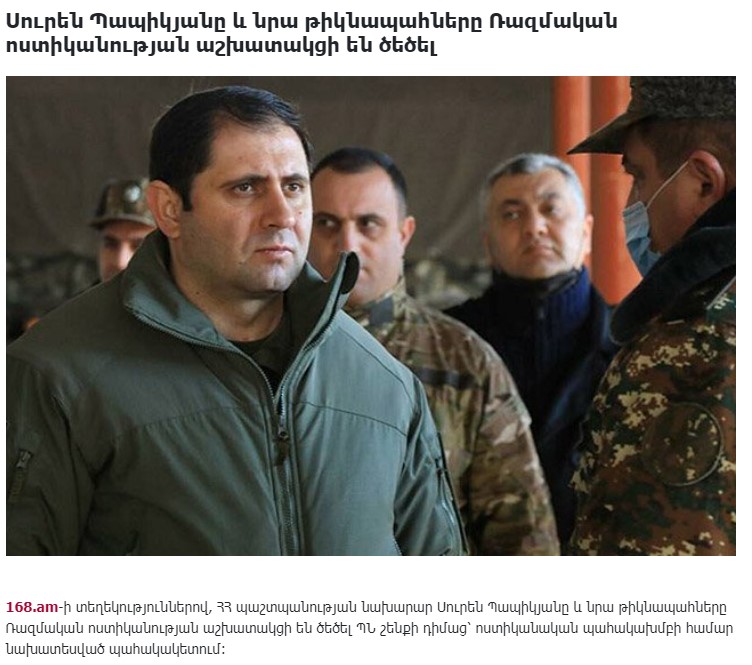 168.am-ի տարածած տեղեկությունը, թե «Սուրեն Պապիկյանը և նրա թիկնապահները Ռազմական ոստիկանության աշխատակցի են ծեծել», անհեթեթություն է, որը որևէ աղերս չունի և չի կարող ունենալ իրականության հետ: