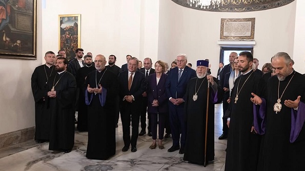 Գերմանիայի նախագահ Շտայնմայերը, շնորհակալություն հայտնելով Նորին Սրբություն Գարեգին Երկրորդ Կաթողիկոսին քրիստոնեական հնագույն սրբավայր այցելելու հնարավորության համար, կարևորեց կրոնների դերակատարությունը ժողովրդների կյանքում խաղաղության և համերաշխության ապահովման գործում։ Պրն․ Շտայնմայերը հավաստիացրեց Հայոց Հայրապետին, որ իր միջնորդական ջանքերը կգործադրի ի նպաստ տարածաշրջանում վերջնական խաղաղության հաստատման։