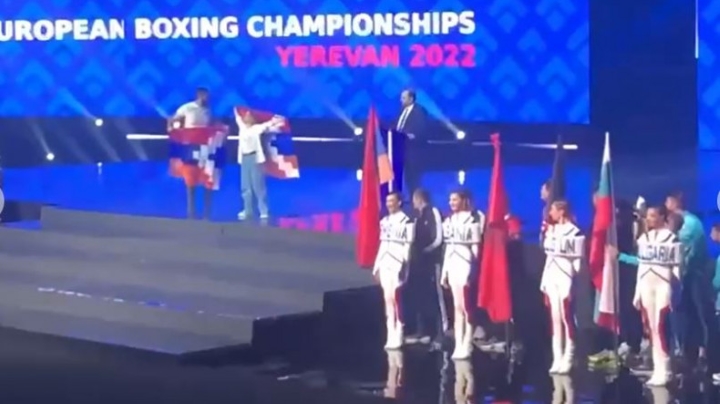 Երևանում Եվրոպայի բռնցքամարտի առաջնության բացմանը երիտասարդները բարձրացել են բեմ ու պարզել Արցախի դրոշը