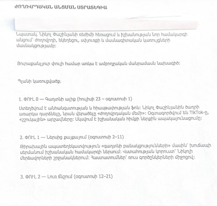 Երեկ իշխանական լրատվամիջոց civic.am-ի հրապարակած «ընդդիմության հեղաշրջման պլանն» այսօր վաղ առավոտյան արդեն իր «պտուղները տվել է»։