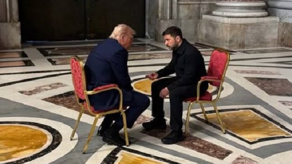 Հանդիպումը, որը Զելենսկին «լավ» է անվանել, տևել է մոտ 15 րոպե։ Հուղարկավորության արարողությունից հետո նրանք չեն հանդիպել՝ Թրամփը անմիջապես լքել է Վատիկանը։ Սակայն, ըստ Ուկրաինայի նախագահի, հնարավոր է եղել քննարկել մի շարք հարցեր, այդ թվում՝ հրադադարի և «տեւական խաղաղության»։