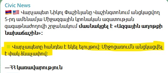 նիկոլի առեղծվածային այս գրառումից հետո ՀՀ կառավարությունը հայտարարել է, որ «Վարչապետ Նիկոլ Փաշինյանը Վաշինգտոնում անցկացվող 5-րդ ամենամյա Միջազգային կրոնական ազատության գագաթնաժողովի շրջանակում մասնակցել է «Ազգային աղոթքի նախաճաշին»։ Վարչապետը հանդես է եկել ելույթով: Միջոցառումն անցկացվել է փակ ձևաչափով»: Շեշտվել է «փակ» որ հանկարծ մեկը նկար կամ հավելյալ բացատրություն չպահանջի: