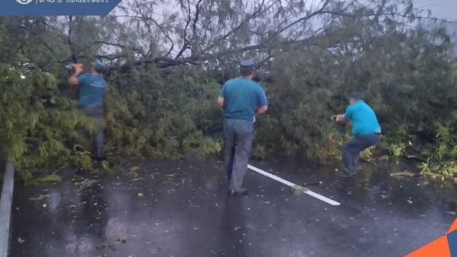 Փրկարարները մասնատել և հեռացրել են ավտոմեքենայի և ավտոճանապարհի վրա ընկած ծառերը. երթևեկությունը վերականգնվել է:
