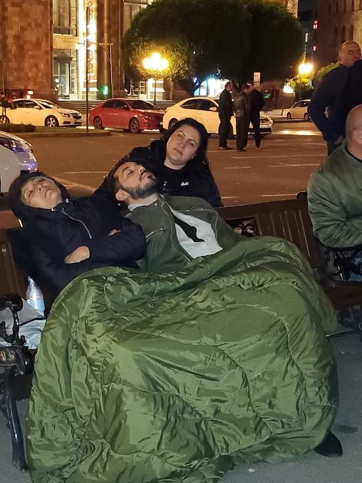 Գիշերը զոհված զինվորների հարազատները անց են կացրել դրոսում՝ Կառավարության շենքի դիմաց, նստարանների վրա։