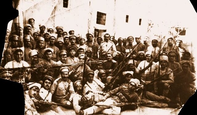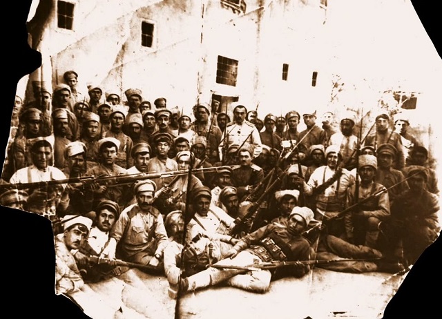 Նկարում ամբողջովին արցախահությունից կազմված ու Սարդարապատի հերոսամարտին մասնակցած մահապարտների 5-րդ գունդն է՝ Պողոս Բեկ–Փիրումյանի հրամանատարությամբ։