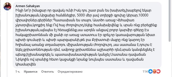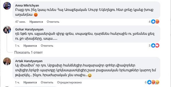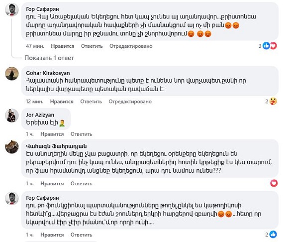 Փաշինյանի՝ Վեհափառին ուղղված գրառումները սղոցում են հանրության նյարդերը։ Օգտատերերը նրա գրառումների տակ զանազան մեկնաբանություններ են թողնում։