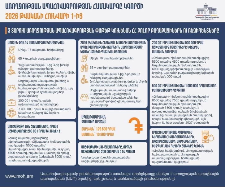 Ընդամենը մի քանի օրից՝ հունվարի 1-ից, Հայաստանում կգործարկվի առողջության համընդհանուր ապահովագրության համակարգը, հայտնում են Առողջապահության նախարարությունից: