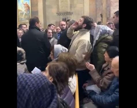Տեսանյութ. Մի խումբ երիտասարդներ բարձր գոչել են կաթողիկոս անունը. Փաշինյանի անվտանգության աշխատակիցները նրանց քաշքշելով հանել են եկեղեցուց