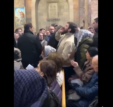 Տեսանյութ. Մի խումբ երիտասարդներ բարձր գոչել են կաթողիկոս անունը. Փաշինյանի անվտանգության աշխատակիցները նրանց քաշքշելով հանել են եկեղեցուց