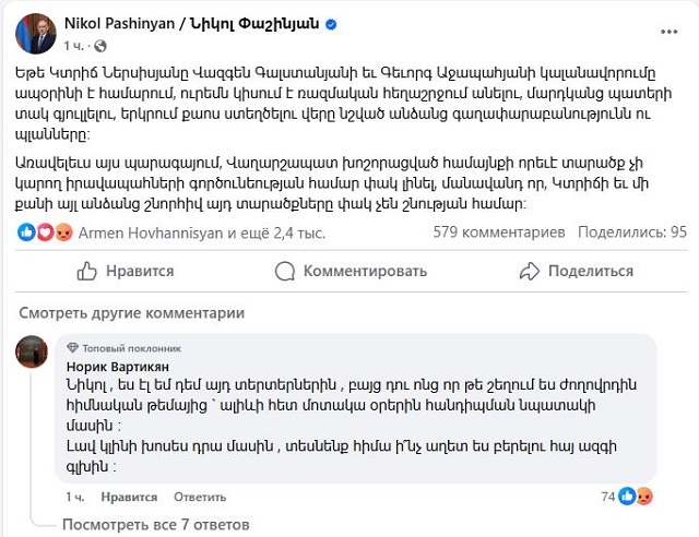 Փաշինյանի նոր գրառմամբ պարզ է դառնում, որ Էջմիածնում իրավապահները գործողություններ են իրականացնելու։
