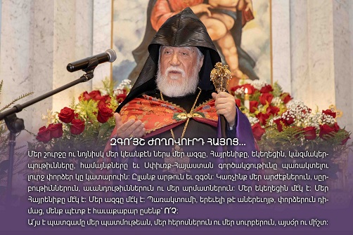 Մեր շուրջը ու նոյնիսկ մեր կեանքէն ներս մեր ազգը, Հայրենիքը, եկեղեցին, կազմակերպութիւնները, համայնքները եւ Սփիւռք-Հայաստան գործակցութիւնը պառակտելու լուրջ փորձեր կը կատարուին, որոնց նշանները յստակօրէն կը տեսնենք Հայաստանի թէ Սփիւռքի մէջ։ Ըլլանք արթուն եւ զգօն։ Կառչինք մեր արժէքներուն, սրբութիւններուն, աւանդութիւններուն ու մեր արմատներուն` մերժելով այնպիսի արժեհամակարգեր, մտածելակերպեր ու գործելակերպեր, որոնք խոտոր կը համեմատին մեր էութիւնը կազմող ու ինքնութիւնը երաշխաւորող բարոյական, հոգեւոր ու ազգային արժէքներուն։ Մեր եկեղեցին մէ՛կ է։ Մեր Հայրենիքը մէ՛կ է։ Մեր ազգը մէ՛կ է։ Պառակտումի, երեւելի թէ աներեւոյթ, փորձերուն դիմաց, մենք պէտք է հաւաքաբար ըսենք՝ Ո՛Չ։