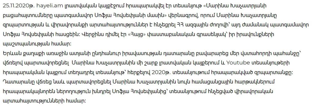 Մանրամասները՝ www.hayc.am/մարինա-խաչատրյանը-ներողություն-կխնդ/