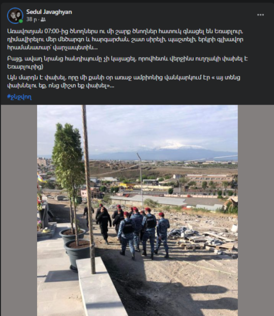 Առավոտյան 07:00-ից մի շարք ծնողներ հատուկ գնացել են Եռաբլուր, դիմավորելու մեր վարչապետին, սակայն հանդիպումը չի կայացել։ Այս մասին իր ֆեյսբուքյան էջում գրառում է կատարել 44-օրյա պատերազմում զոհված Գեւորգ Ջավաղյանի քույրը։