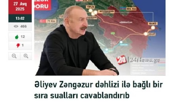 Այսպես կոչված «Զանգեզուրյան միջանցքի» մասին ևս Ալիևը հետաքրքիր թեզ է առաջ բերում, միանգամայն հերքելով ՀՀ իշխանությունների բոլոր հայտարարությունները։ Այստեղ նա մասնավորապես նշում է, որ միջանցքը պարզապես անվանումն է փոխել, անվանվելով Թրամփի անունով, սակայն պահպանելով էությունը»։