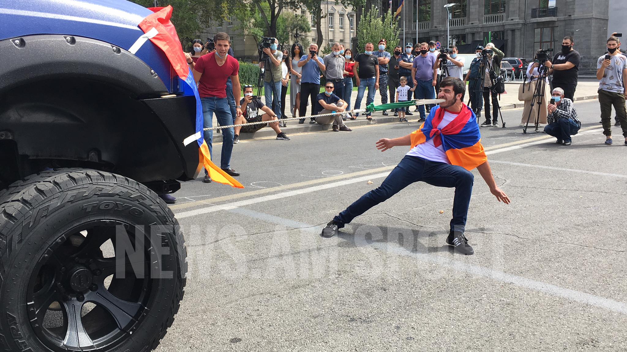 Երեւանի Շահումյանի հրապարակում Սաքունց եղբայրները մեծ թվով երկրպագուների աչքի առաջ ատամներով բռնած ճոպաններով մի քանի մետր տեղաշարժեցին 4 տոննա քաշով ավտոմեքենա եւ 10 տոննա քաշով ավտոբուս:
