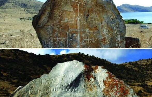 …Ցեղասպանության զոհերի հիշատակին կանգնեցված մի խաչքար-հուշարձան էլ պահպանվել է Վանա լճի հարավային ափին գտնվող Վառենց գյուղի (ներկայումս՝ գյուղատեղի) գերեզմանոցում: Խաչքարը կերտվել է 1897 թ. Համիդյան ջարդերին զոհ գնացած մի խումբ վառենցցիների… հիշատակին: Արձանագրությունը փորագրված է խաչքարի երեսին՝ 17 և թիկունքին՝ 4 տողով (չափ.՝ 1,45 x 1,65 մ).