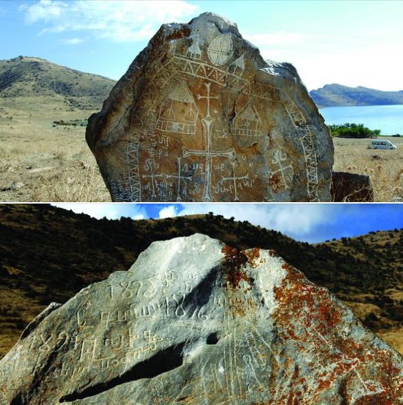 Մարտիրոս, Ղազարի հոգին, | Աւէտիս, | Վարդան, | Ղազար, | Մարգար, | Սարգիս, | Վարդեր: | 1896-ին (ն)այա{ն}տակ(ե)ցին 1897-ին խա(երի)ն …օրն Ե (5) … | Տ(է)ր ա(ստուա)ծ | Յ(իսու)ս Ք(րիստո)ս: | Յիշադակ է Րանիլին(՞), արդարոք |մաքուր մաղթանօք և բար(ե)խո[ս] Ա(ստուա)ծած(ն)այ տ(է)ր Յ(իսու)ս ա(ստուա)ծ…: || 1895-ին աշնան | և գարնան 1896 նահատական: | 1894 թվ(ին), ՌՅԽԶ (1897) | և խաերուս օծում»: