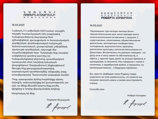 Այսօր ևս հանրային դիսկուրսը Նախագահի` անցնող 3 ֊ 4 ամիսների ընթացքում հանդիպած անձանց հետ վերքերը բուժելու և երկիրը վերականգնելու պատրաստակամության, ապա նաև Հայաստան Համահայկական Հիմնադրամի վերաբերյալ հայտարարության շուրջ էր, ինչպես նաև` ՔՊ նախկին պատգամավոր Թագուհի Թովմասյանի հրապարակած փաստաթղթի, ինչը վերաբերում է《Մարտի 1》֊ի կոչվող գործով մեղադրյալ Գևորգ Կոստանյանին, բնականաբար, նաև մյուս մեղադրյալներին, այդ թվում` Նախագահ Քոչարյանին, ինչին, սակայն առավել մանրամասն կանդրադառնամ հաջորդիվ։