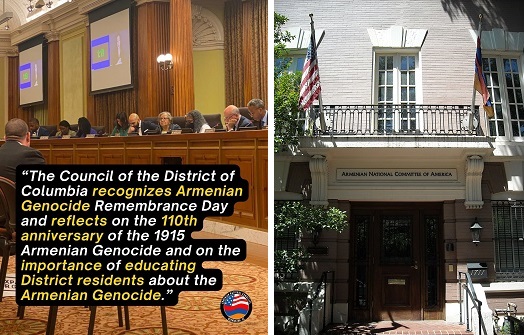 Վաշինգտոնի քաղաքային խորհուրդը Հայոց ցեղասպանության 110-րդ տարելիցին նվիրված միաձայն բանաձև է ընդունել՝ վերահաստատելով ապագա սերունդներին կրթելու կարևորությունը՝ նման վայրագությունների կրկնությունը կանխելու համար։ Դրա մասին ասված է Ամերիկայի «Հայ Դատի» հանձնախմբի (ANCA) հայտարարության մեջ։