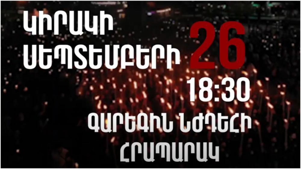 Սեպտեմբերի 26-ին, ժամը 18։30-ին Գարեգին Նժդեհի հրապարակից կմեկնարկի ջահերով երթ դեպի Եռաբլուր: Ցույց տանք թշնամուն, որ հայը չի հանձնվել: