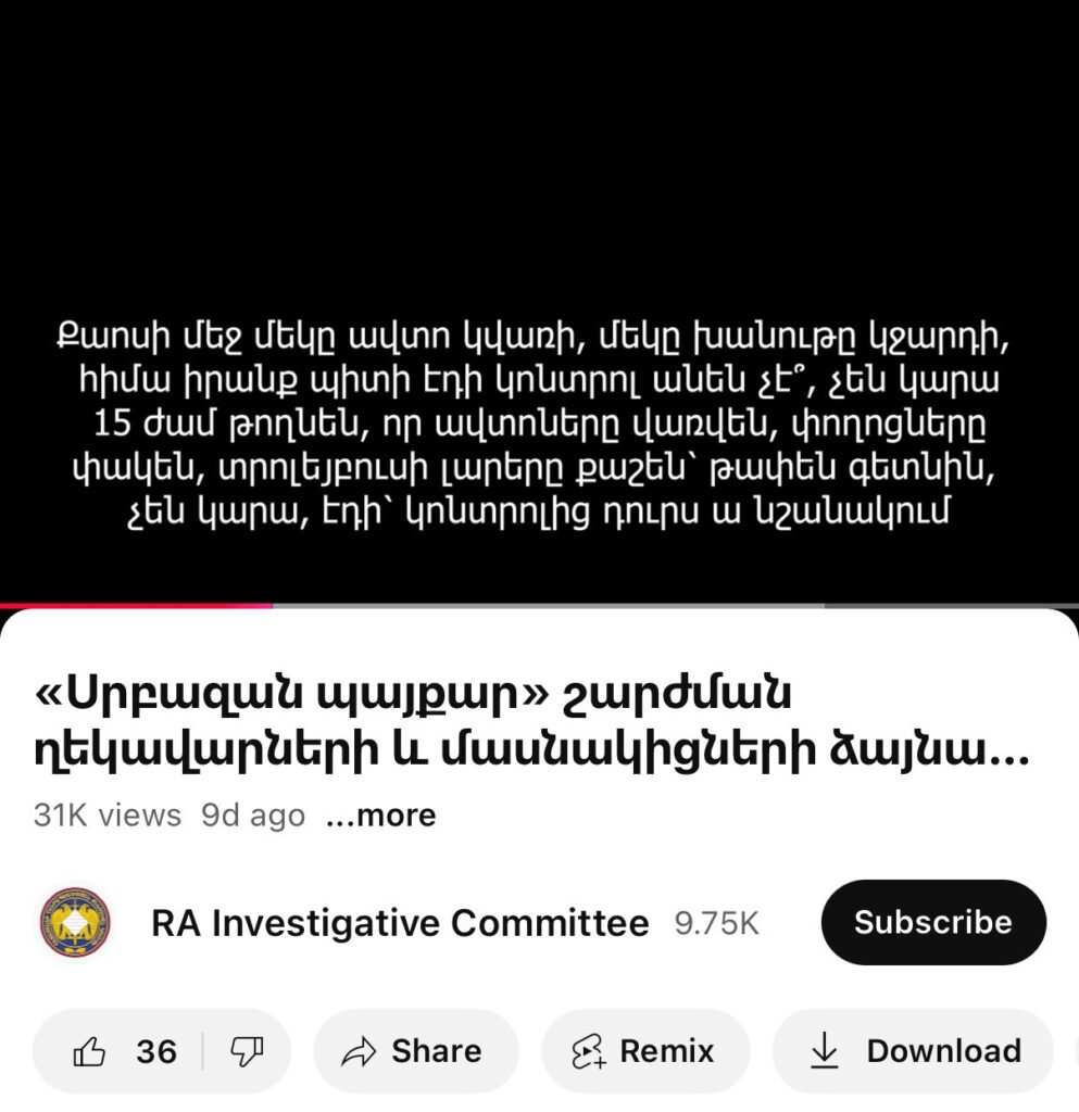 Միահամուռ կերպով դատապարտում ենք ներկա վարչակարգի բոլշևիկյան բռնաճնշումների գործելաոճը. հայտարարություն