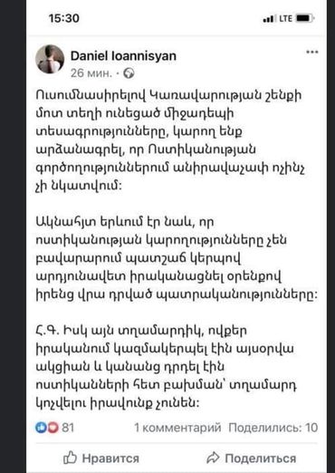 ՀԱՅՏԱՐԱՐՈՒԹՅՈՒՆ 25.10.2025թ․ Հայաստանյայց Առաքելական Սուրբ Եկեղեցու Արագածոտնի թեմի ներքոնշյալ հոգևորականներս հայտնում ենք, որ ոստիկանության ծառայողների միջոցով երեկ՝ 24.10.2025թ․ տարբեր ժամերի...