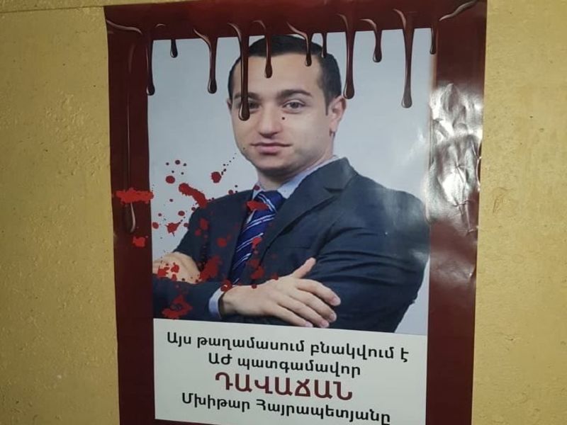 Մի խումբ քաղաքացիներ ակցիա են իրականացրել ՀՀ Ազգային ժողովի իմքայլական պատգամավոր Մխիթար Հայրապետյանի բնակավայրի տարածքում՝ տարբեր տեղերում փակցնելով նրա լուսանկարը՝ «Այս թաղամասում բնակվում է ԱԺ պատգամավոր, դավաճան Մխիթար Հայրապետյանը» մակագրությամբ: