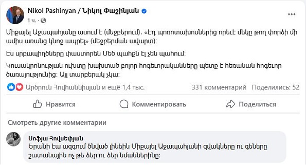 Նիկոլ Փաշինյանն արթնացել է։ Դա է վկայում նրա ֆեյսբուքյան նոր գրառումը. թիրախում դարձյալ եկեղեցին ու հոգևորականներն են։