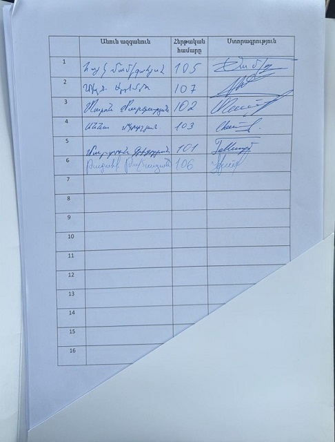 Իմպիչմենտի գործւնթացի տակ կա 6 ստորագրություն. դրանք «Պատիվ ունեմ» խմբակցության պատգամավորների ստորագրություններն են