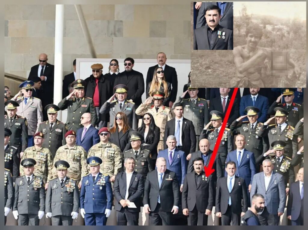 Հայաստանին հաղթելու կապակցությամբ կազմակերպված ռազմական շքերթի ժամանակ Ալիևի հետ տրիբունին կանգնածն Իբադ Հուսեյնով է, ով 1993 թ֊ի հունիսի 12֊ին Մարտունու շրջանի Մուղանլի գյուղում մորթել էր Մարտունու բնակիչ Ռոբերտ Բաբաջանյանին և նրա գլխի հետ լուսանկարվել էր…
