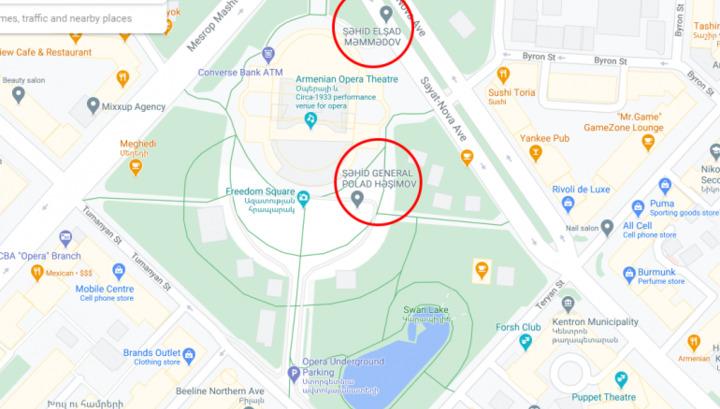 «Google Maps-ի քարտեզներում ադրբեջանցիները Երևանի փողոցները անվանափոխել են իրենց հերոսների անունով: